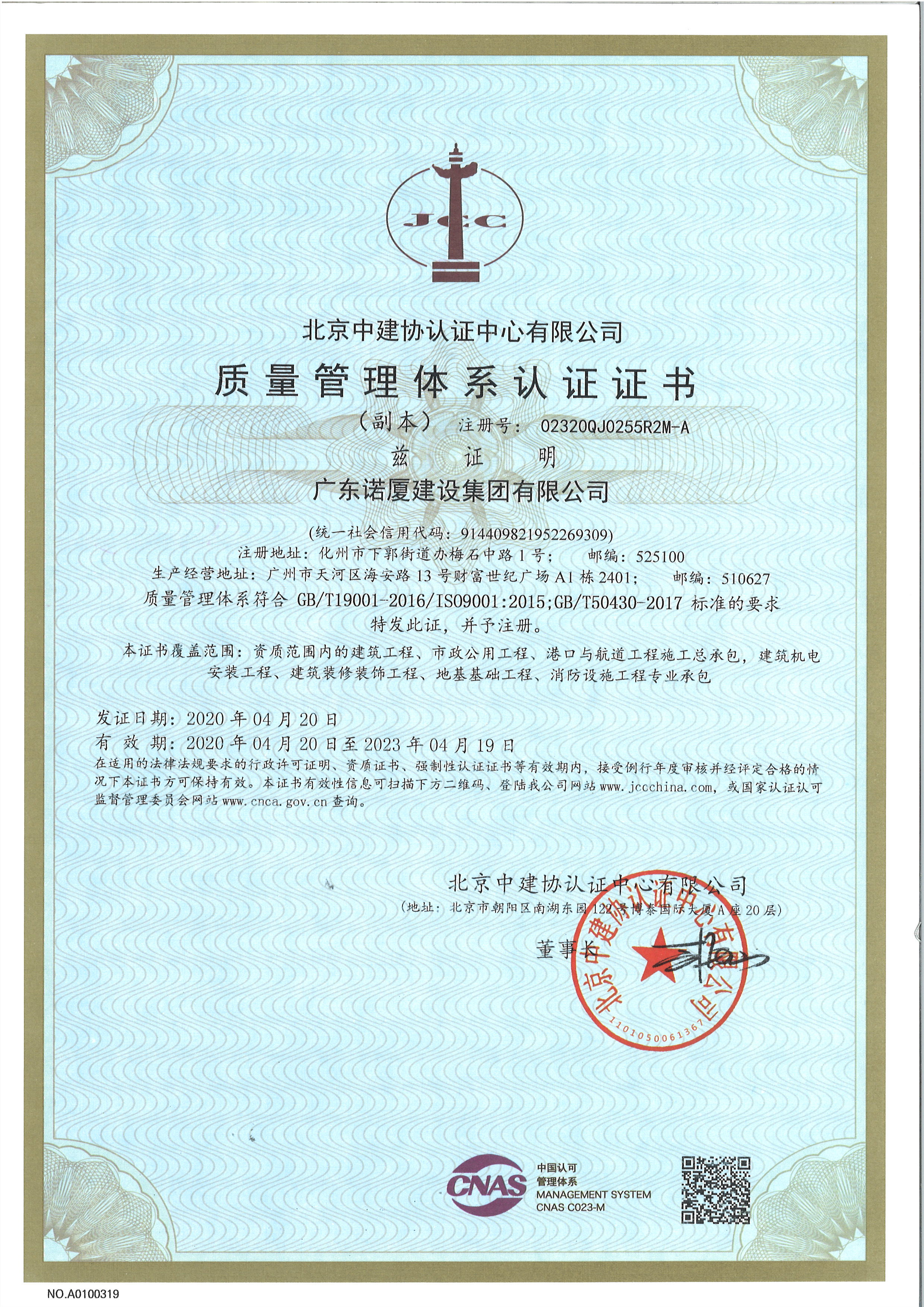 廣東諾廈建設(shè)集團(tuán)有限公司是諾廈集團(tuán)的核心企業(yè),具備國(guó)家房屋建筑工程施工總承包壹級(jí)、市政工程施工總承包壹級(jí)、港口與航道工程總承包、建筑裝修裝飾工程、消防設(shè)施工程、地基基礎(chǔ)工程、機(jī)電設(shè)備安裝工程、體育場(chǎng)地設(shè)施工程、建筑智能化工程、河湖整治工程、水利水電工程等資質(zhì)。......